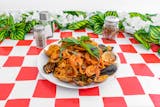 Shrimp, calamari, mussels, clams. Red or white. Over pasta.